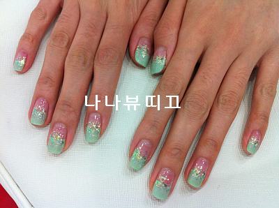 프렌치라인에 3가지 글리터를 믹스한 깔끔한 젤아트