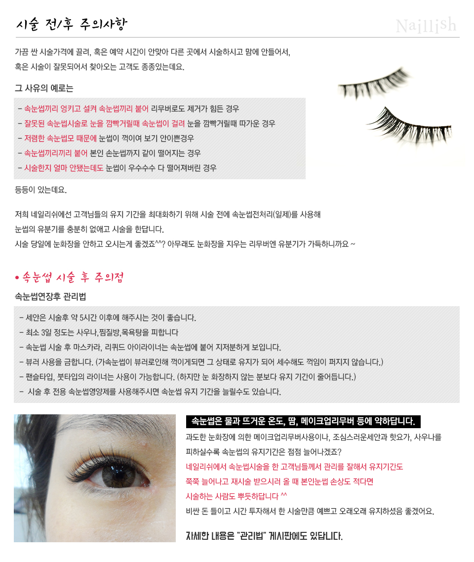 속눈썹증모란? > 시술 전/후 주의사항